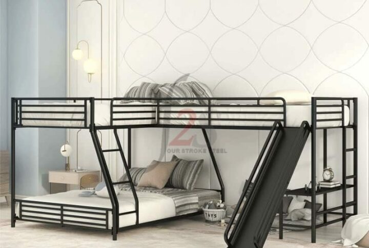 Ensemble mécano-soudé en tube d’acier, Plateforme en mélaminé . Plateaux du haut et milieu amovibles. 2 roues pivotantes et 2 roues fixes à bandage TPE, moyeu à roulement à billes central. Freins sur roues pivotantes. Charge plateau du haut et milieu 120 kg.